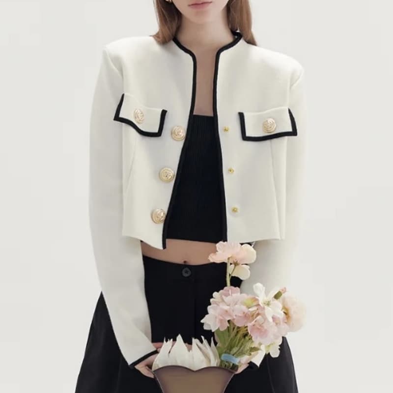 BALMAIN best quality high end custom lion head gold buckle decorative bag edge round neck long sleeve knitted cardigan short top FZ241
