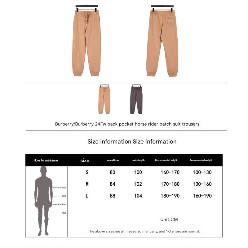 BURBERRY Best Quality Back Pocket War Horse Rider Patch Suit Trousers 100% Cotton Gray+Light Brown FZ167