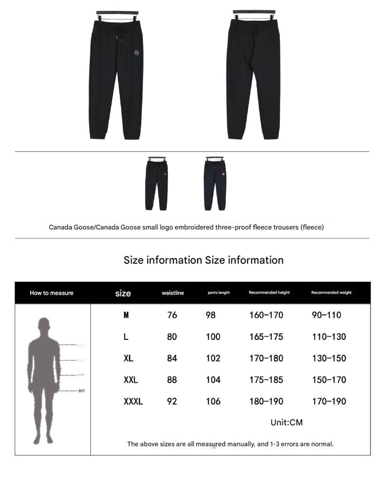 Canada Goose Best quality 100% cotton fall winter Embroidered three-proof fleece long pants solid color sport trousers FZ121