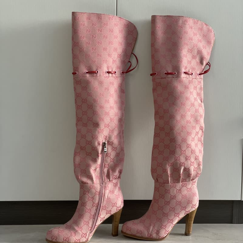Gucci top quality khaki PINK western cowboy style women’s over the knee high heel boots SH181
