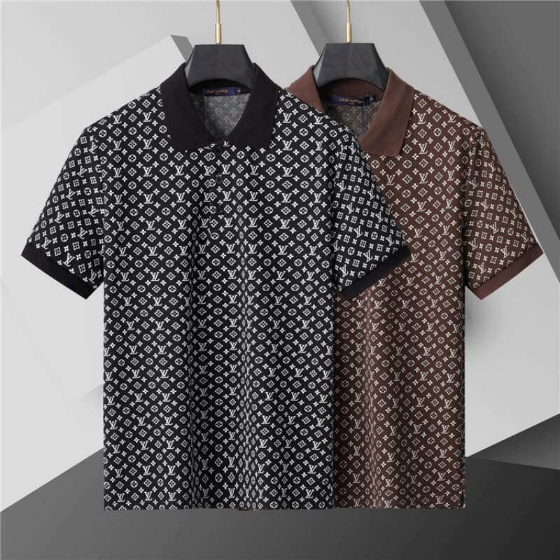 Louis Vuitton Dark Business Wear Embroidered Collar Detail Short Sleeve Polo Shirt Men T-Shirt FZ292