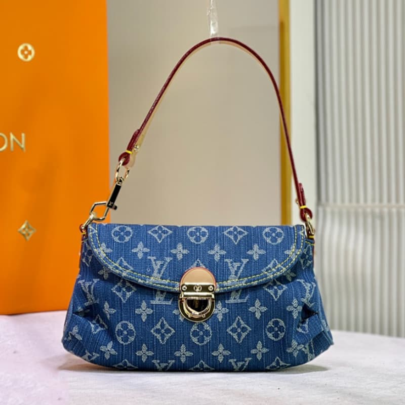 LV Louis Vuitton high quality denim pattern embroidery decorated simple handbag 26x17x7CM LB143