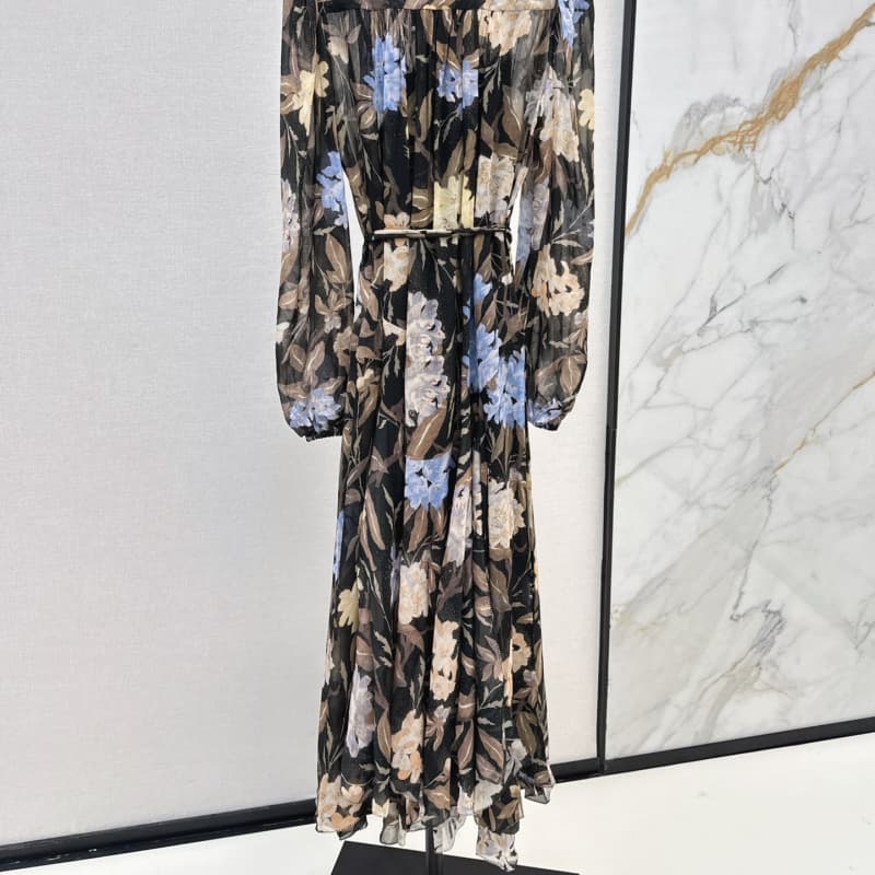 ZIMMERMANN best quality Early Spring Waist elastic Floral Pattern Holiday black see-through long Dress FZ081 数量