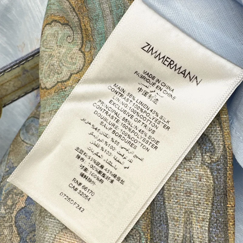 ZIMMERMANN Best quality New 55% linen +45% mulberry silk printed ageing girl dress FZ068