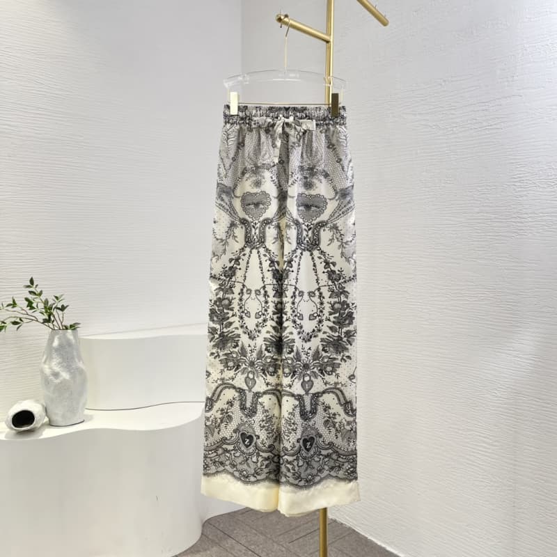 Zimmermann best quality silk texture spring grey white floral print long sleeve blouse tops and pants set FZ323 数量