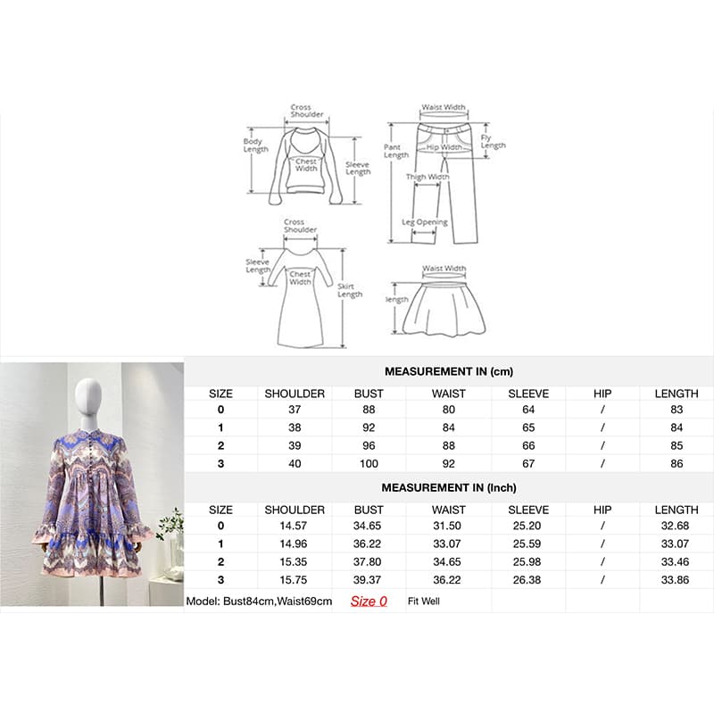 Zimmermann High Quality purple violet paisley print long sleeve pleat mini dress 100%Linen FZ341